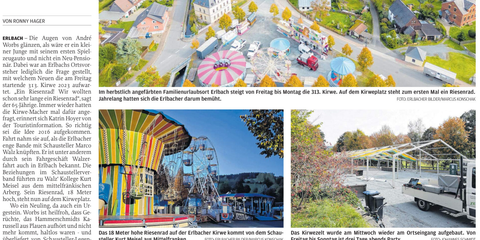 Artikel zur diesjährigen Erlbacher Kirwe in der Freien Presse – 20.10.23