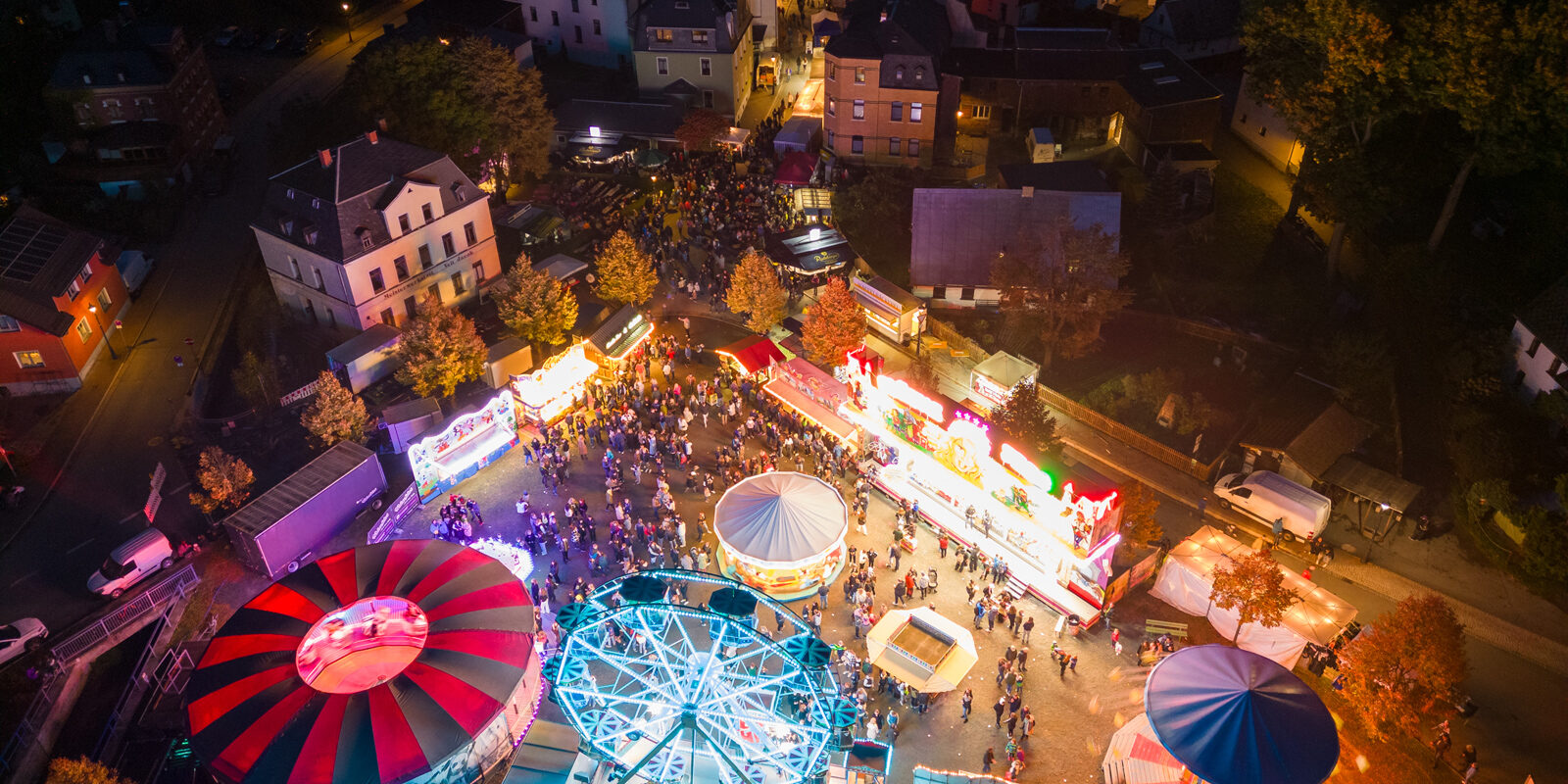 last, but not least: luftige Blicke auf den Kirweplatz 🎡🎠 – teils über Erlbach gen Kegelberge – am Tage und in der Dämmerung 🤩