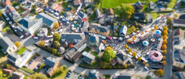 auch dieses Jahr heißt es wieder: last, but not least Luftige Blicke auf den Kirweplatz, teils über Erlbach samt Kegelberge – am Tag und in der Dämmerung 🤩