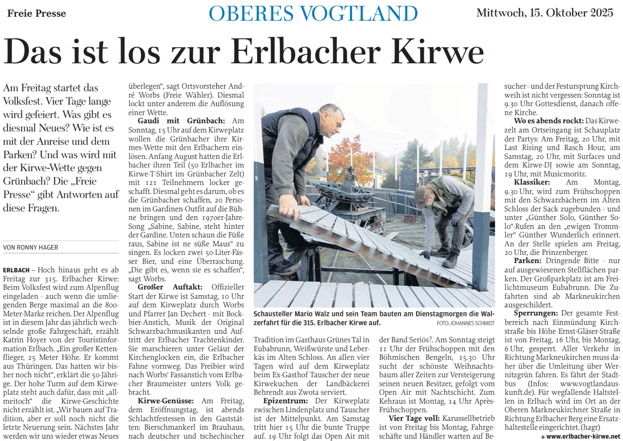 Homepage der Erlbacher Kirwe – Erlbach / Vogtland