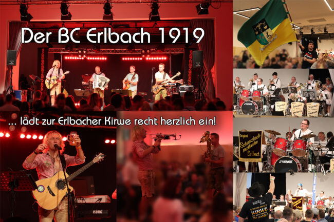 Auch in diesem Jahr findet die Erlbacher Kirwe wieder unter Organisation des BC Erlbach 1919 im „Alten Schloss“ statt.